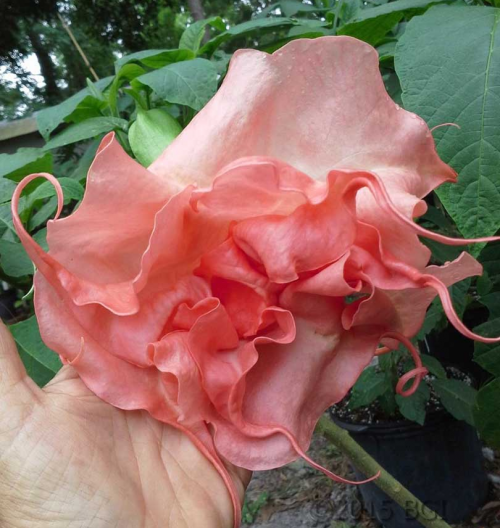 Alt i dette galleri er Brugmansia i alfabetisk orden. Alle er varme Engle, det vil sige, at de dufter alle når duggen sætter ind morgen eller aften. Alle er enten enkelte, dobbelte, tredobbelte eller helt rosen fyldt. De fleste vokser hurtigt, bliver i gennemsnit mellem en og to meter, blomster ofte tre gange på en sæson. Alle viste på billederne er egne moderplanter. Kig i vores webshop her på siden, der vil altid hurtigt blive opdateret med små flotte planter, som er børn af vores moderplanter. Vi har ikke alle, men et stort vekslende udvalg løbende fra 1. april til 15. september, hvor webshoppen vinter lukker. Alle planter der er sat til salg, er med godt rodnet, og godt i vækst. Vi sender meget gerne, pakker i special kasser, med indvendige planterør, så planten kommer godt frem. Vi sender med GLS til nærmeste pakkeboks, hvor du kan hente pakken dagen efter bestilling.